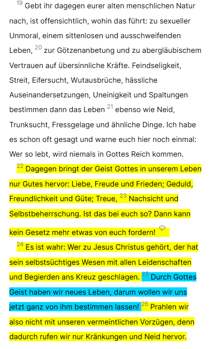Denn wenn wir weiterlesen in Galater 5:25 hat uns Jesus durch das von unserer Schuld reingewaschen und erlöst, darum wer zu ihm gehört ist/wurde neu geboren und besitzt ein neues Leben.